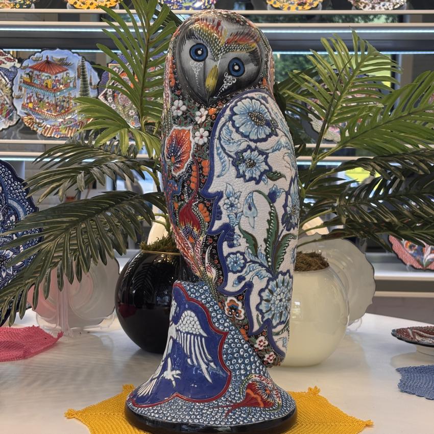 Özel koleksiyonumuzdaki el boyaması baykuş, bilgeliğin sembolünü taşıyor.